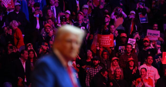 Donald Trump en el acto en el que un comediante hizo comentarios racistas sobre Puerto Rico (Kenny Holston/The New York Times)