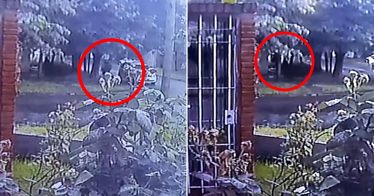 Durante los siguientes momentos captados en la filmación, la persona se ubicó frente al árbol, dejó al bebé en el suelo y llevó a cabo diferentes maniobras que no se alcanzan a notar claramente en las imágenes que fueron tomadas por las cámaras.