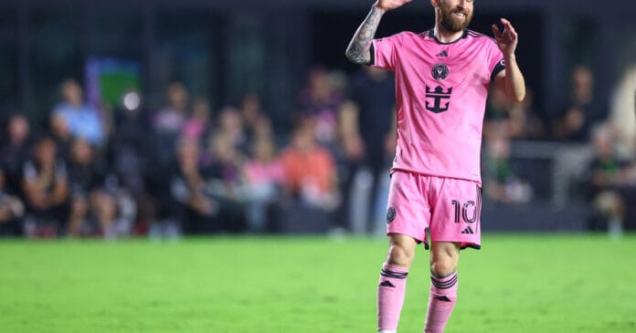 FORT LAUDERDALE, FLORIDA - NOVEMBER 09: Lionel Messi #10 of Inter Miami reacts against Atlanta United during the second half of the Audi 2024 MLS Cup playoffs at Chase Stadium on November 09, 2024 in Fort Lauderdale, Florida. Megan Briggs/Getty Images/AFP (Photo by Megan Briggs / GETTY IMAGES NORTH AMERICA / Getty Images via AFP)