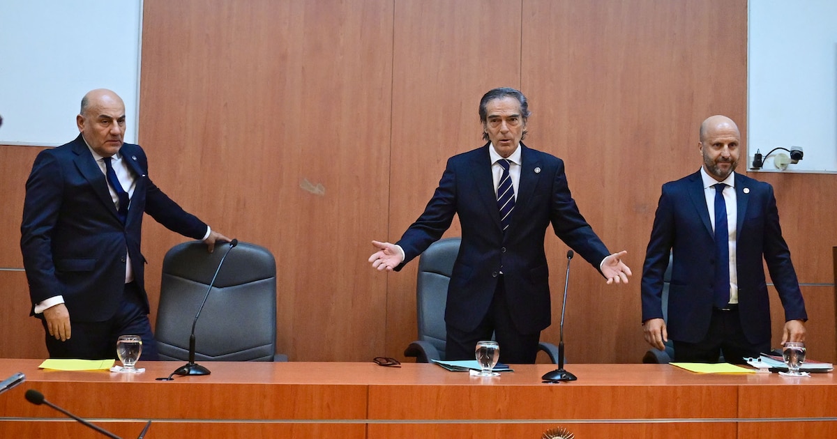 Los jueces de Casación que dictaron la sentencia: de izquierda a derecha, Diego Barroetaveña, Gustavo Hornos y Mariano Borinsky (Maxi Luna)