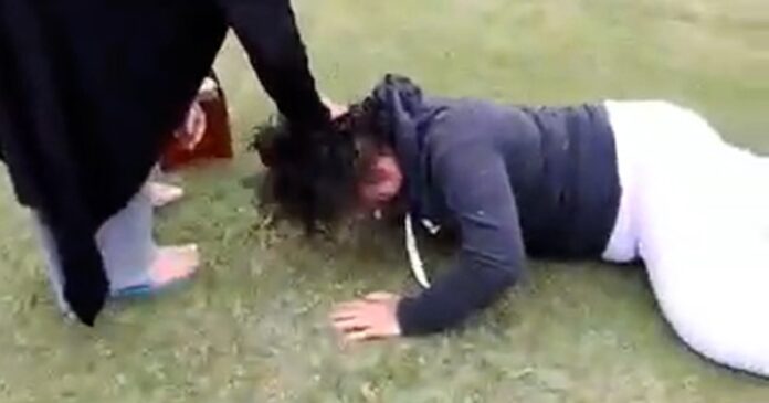 Un hombre que se encontraba en el predio grabó los momentos posteriores a la agresión. En las imágenes se observa a la pareja señalada alejándose del lugar mientras la víctima lloraba tendida en el suelo. “Me partió el palo en la cabeza, loca de mierda”, decía entre lágrimas.