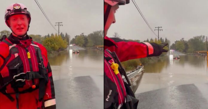 Durante la mañana de este jueves 21 de noviembre, un conductor enfrentó una decisión crítica en medio de las intensas lluvias que golpearon Santa Rosa, una región del norte de California conocida por su vulnerabilidad a las inundaciones. Al intentar atravesar una calle inundada en el cruce de River y Slusser, el agua subió rápidamente, dejando al conductor atrapado en su vehículo. La situación lo obligó a abandonarlo y buscar refugio, evitando un posible desenlace fatal.
