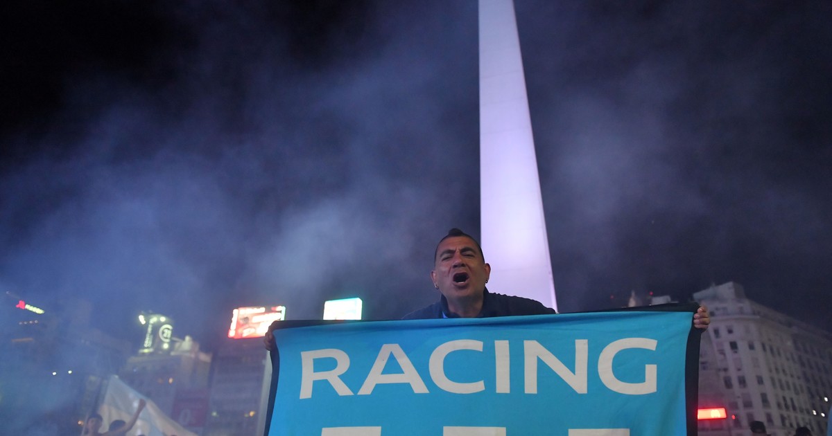 Sebastián Báez, figura del tenis argentino, fue al Obelisco para festejar el título de Racing. (IG)