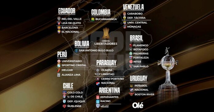 Paraguay (todos definidos): Olimpia, Libertad (a grupos), Cerro Porteño y Nacional (a fases previas)