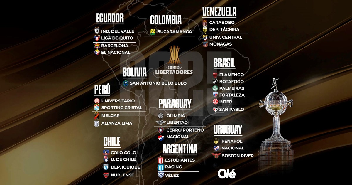 Los otros clasificados serán el campeón de la Liga Profesional (Vélez es el líder), el campeón de la Copa Argentina (Central Córdoba, Boca o Vélez) y los tres primeros ubicados en la tabla anual (hoy son el propio Vélez, River y Talleres).