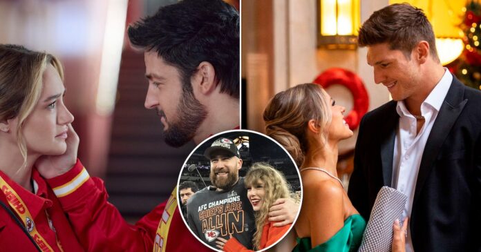 Lifetime estrenó el 23 de noviembre “Christmas in the Spotlight”, una película que sigue la historia de amor entre Bowyn, una estrella pop, y Drew, un jugador de fútbol americano, en circunstancias que recuerdan al romance real entre Taylor Swift y Travis Kelce. La guionista Eirene Tran Donohue señaló a AP News que, aunque la historia no aborda directamente a la pareja, está inspirada en su dinámica y en cómo celebran mutuamente sus logros.