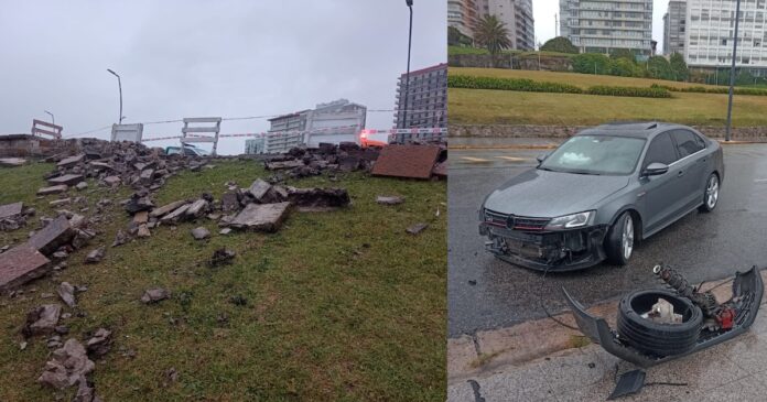 Aunque el impacto destruyó la estructura, el Volkswagen Bora rebotó, hizo un trompo y terminó cruzado en la calle. Si hubiera seguido de largo, del otro lado de la pared hay un barranco de pocos metros, y después lo esperaba el mar.