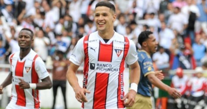 liga de quito – Álex Arce puso el 4-0 de Liga de Quito ante U. Católica El paraguayo completó su triplete ante la Chatoleí. Crédito: Zapping
