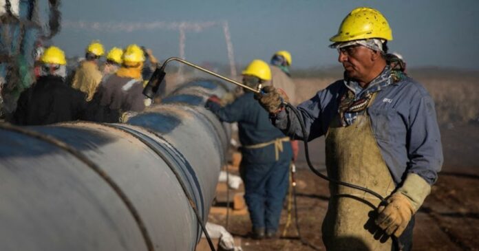 Operarios trabajando en la construcción del gasoducto Néstor Kirchner, en abril de 2023 (REUTERS/Martin Cossarini)