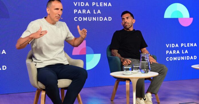 Pepe Sánchez, Cristian García Sarubbi (Director de Comunicación y Desarrollo Humano), Diego Leuco, Martín Pochat (Presidente del Grupo OSDE), Carlos Tévez y Luis Fontana (Director General de OSDE).