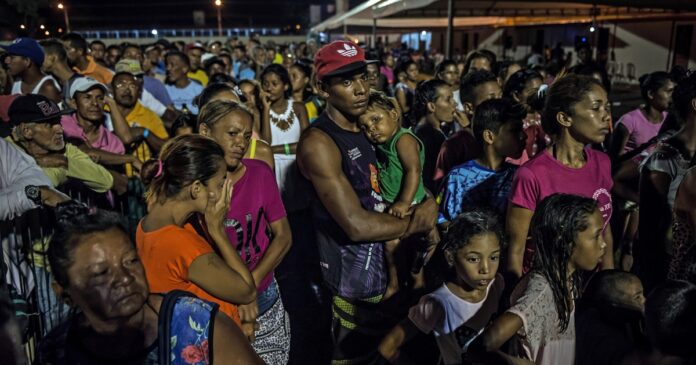 Migrantes venezolanos en Boa Vista, Brasil, esperando para recibir comida (Meridith Kohut/The New York Times/Archivo)