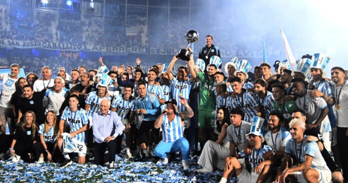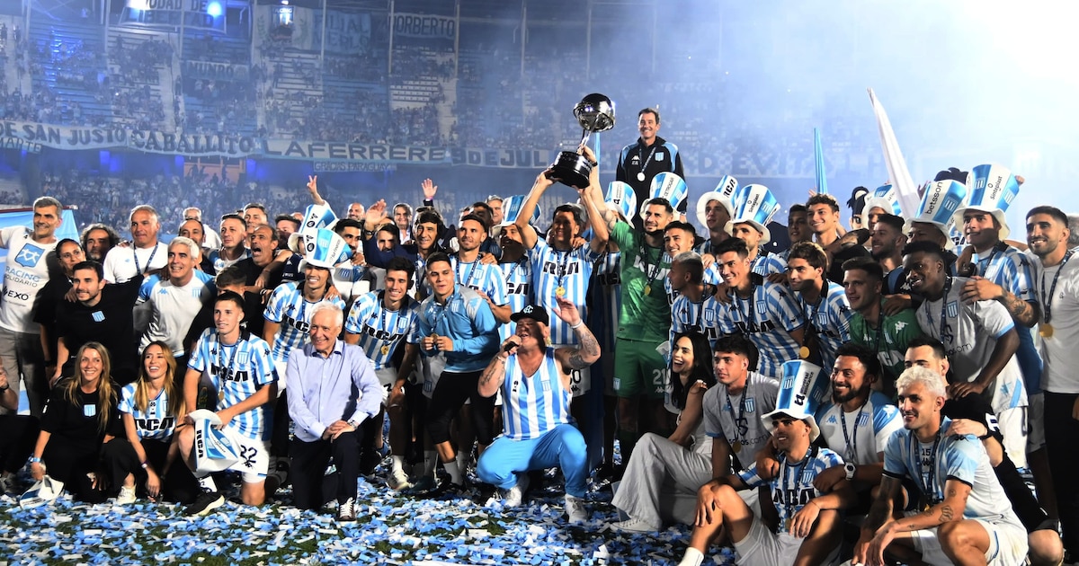 Los festejos de Racing tras la obtención de la Copa Sudamericana