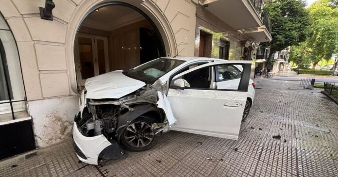 Un violento choque ocurrió esta mañana en la avenida del Libertador al 2778, cuando un Chevrolet Onix, que circulaba a gran velocidad, se subió a la vereda, tocó un cantero y quedó incrustado en el frente de un edificio en el barrio de Palermo.