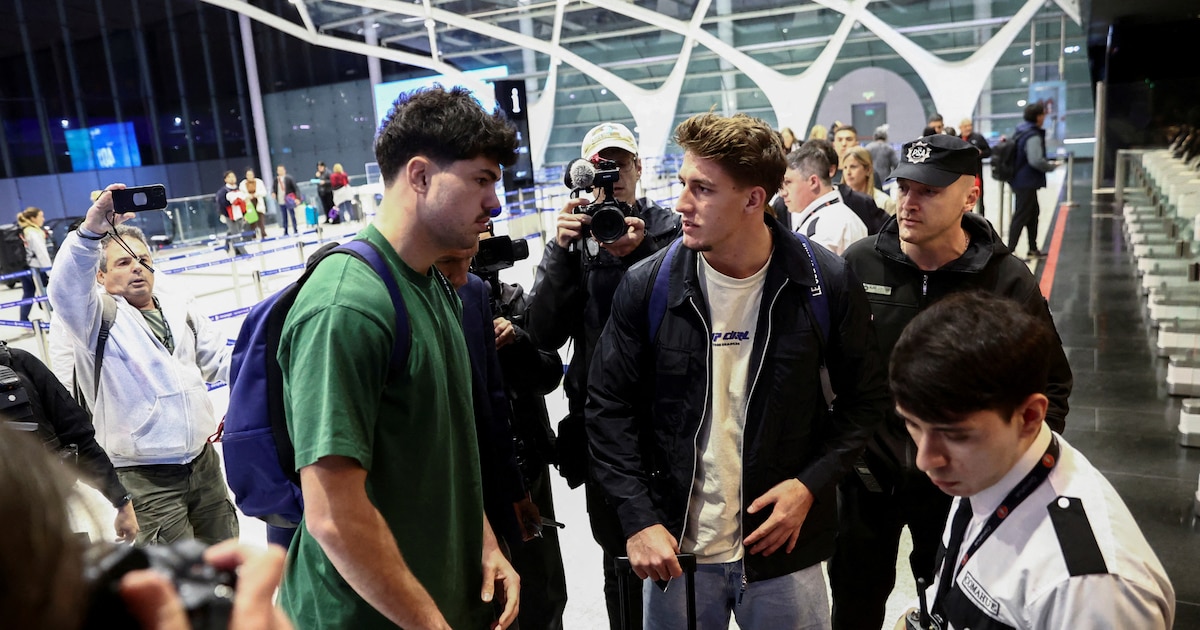 Oscar Jégou y Hugo Auradou en el aeropuerto de Ezeiza (REUTERS/Tomas Cuesta/File Photo)