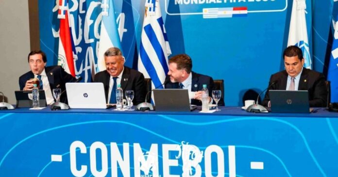 “Como decía el presidente Alejandro Domínguez, hoy va a ser un día histórico para el fútbol mundial y un día histórico para el fútbol sudamericano, donde, como se lo dijimos en Francia en la previa de los Juegos Olímpicos, usted va a ser el presidente que quede en la historia por haberle dado la posibilidad a todos los continentes, en su gestión, de poder tener el gran compromiso de realizar un Mundial, con todo lo que representa”, comenzó Chiqui en su exposición.