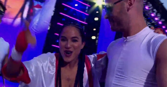 Flor Vigna haciendo su ingreso al ring