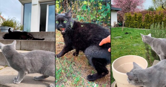 Una gatita gris y un misterioso gato negro protagonizan una historia que ha cautivado a muchos internautas (Tik Tok @fencecat)