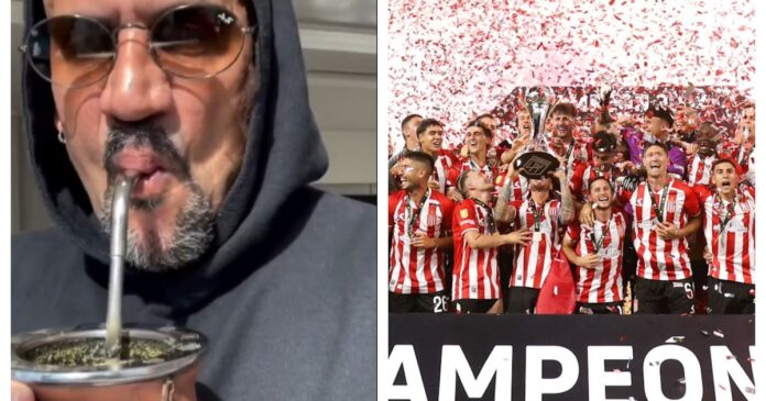 Consumado el título en Santiago del Estero, a través de sus historias de Instagram, el presidente de Estudiantes mostró cómo festejó desde su departamento junto a su mujer, Valentina Martín, con quien espera una hija. “¡Vamos! Ya es campeona”, expresó, mientras mostraba la panza de su pareja, quien atraviesa su octavo mes de embarazo.
