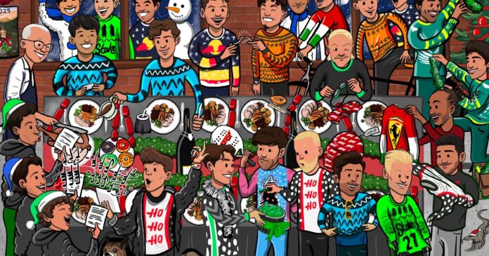 Se los puede ver a los coequiper de la W celeste en la punta de la mesa, mientras Franco le sirve una salsa en el plato del británico. Además, se pueden ver a otros pilotos comiendo, cantando, abriendo sus regalos y armando el árbol de Navidad. Entre los más destacados, Lewis Hamilton probándose un buzo de Ferrari, escudería que defenderá a partir de la temporada que viene, Fernando Alonso armando el árbol con la ayuda de Lance Stroll, Max Verstappen con una corona junto a Lando Norris, el campeón y subcampeón de este año, y Charles Leclerc andando en bicicleta.