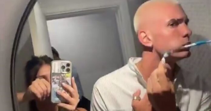 En un video publicado en TikTok por su hermana Lucila, Mastan aparece teñido de rubio, con el pelo bien cortito, mientras se afeita (y se cepilla los dientes).