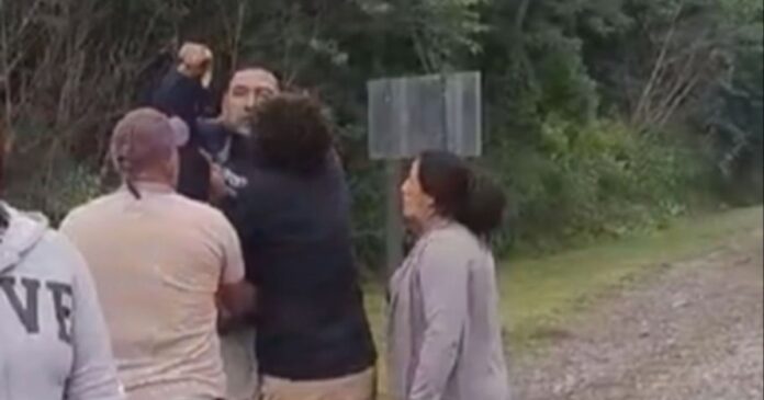 En el video que llegó a El Tribuno se puede ver al hombre amenazando al inspector de tránsito mientras los otros ocupantes de la camioneta intentan calmarlo.