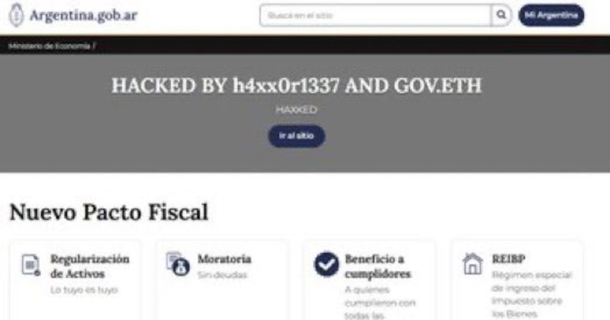 Este miércoles durante más de una hora en la página principal del portal Mi Argentina, se vio por un momento un video del rapero Homer el Mero Mero y que los ciberdelincuentes identificados como “h4xx0r1337 $gov.eth” dejaron mensajes en torno de burla que decía “really? hacked again!?” (¿de verdad? ¿hackeado de nuevo?). Además, en el pie de página del portal incluyeron un mensaje en contra del mandatario al publicar “fuck Milei”.