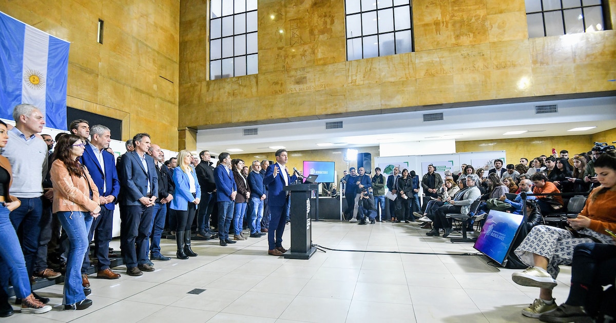Axel Kicillof junto a intendentes peronistas en una conferencia