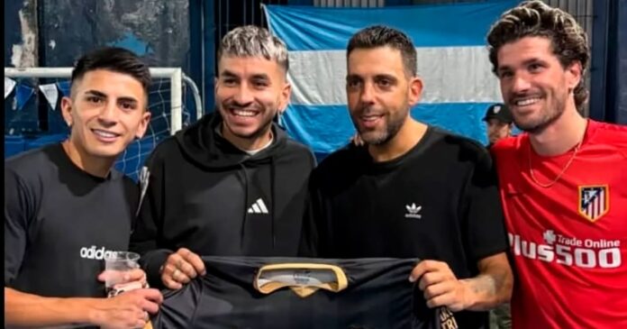 Thiago Almada, Rodrigo De Paul y Ángel Correa en el club Bristol para un picadito navideño (@clubbristo.oficial)