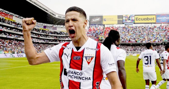 liga de quito – Álex Arce puso el 4-0 de Liga de Quito ante U. Católica El paraguayo completó su triplete ante la Chatoleí. Crédito: Zapping