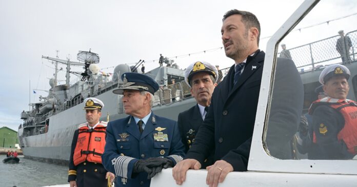 El ministro de Defensa, Luis Petri, junto al Vicealmirante Carlos María Allievi, jefe de la Armada