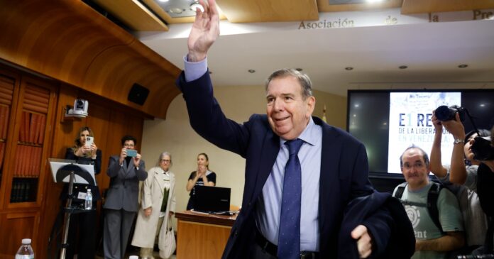 El excandidato presidencial opositor Edmundo González en una conferencia de prensa en el centro de Madrid, España, el martes 10 de diciembre de 2024. (AP Foto/Bernat Armangué)