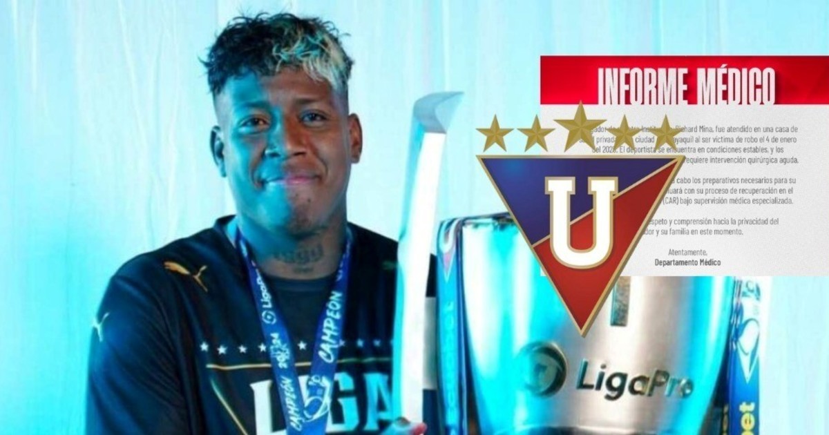 El deportista se encuentra en “condiciones estables y no requerirá de una intervención quirúrgica aguda”, comunica LDU. Mina fue internado en una casa de salud privada en Guayaquil, pero será trasladado a Quito para llevar a cabo su proceso de recuperación bajo supervisión médica especializada.