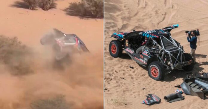 El accidente tuvo lugar apenas en el kilómetro 12 de la especial, cuando el coche del francés perdió el control y volcó de manera impactante. Según las imágenes aéreas, el vehículo dio varias vueltas antes de detenerse completamente dañado por el golpe contra un bache. Pese a lo aparatoso del incidente, tanto Loeb como su copiloto, Fabian Lurquin, salieron ilesos. Sin embargo, esto les costó un retraso significativo: alrededor de 50 minutos tras pasar el segundo waypoint.