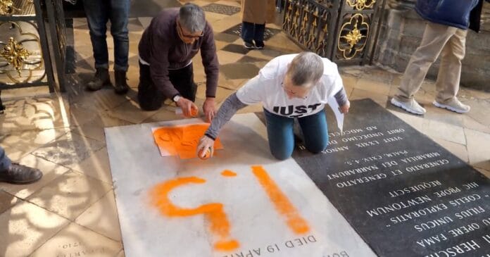 Activistas climáticos británicos vandalizaron la tumba de Charles Darwin en la Abadía de Westminster