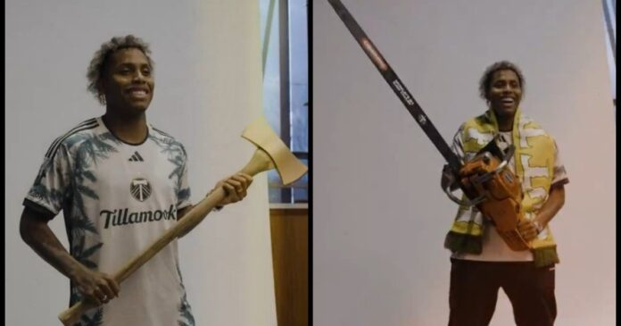 “Creemos que Joao encajará muy bien aquí”, escribió el equipo en las redes sociales junto al video. En las imágenes se ve a Ortiz con la camiseta del Portland, en su nuevo estadio y usando hacha, hasta una motosierra.