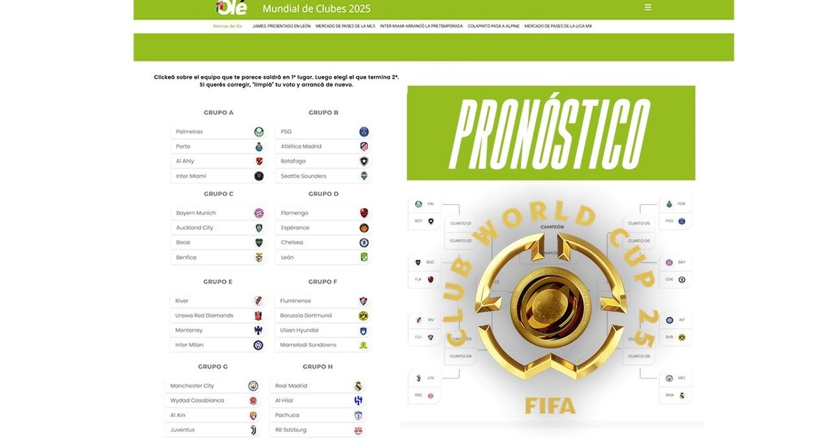 Cada vez falta menos para el inicio del Mundial de Clubes 2025, que se jugará entre junio y julio en Estados Unidos. Pasó el sorteo donde quedaron definidos los ocho grupos y los equipos se van reforzando de cara a la temporada, con este torneo como lo inédito y fuerte del año. El partido inaugural será entre el Inter Miami de Lionel Messi y Al Ahly en el Hard Rock. Olé USA – MX te invita a hacer tu pronóstico y jugar un poco con quién será el campeón de este certamen FIFA.