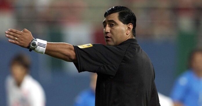 Byron Moreno luego de expulsar a Totti en el Mundial Corea-Japón 2002.