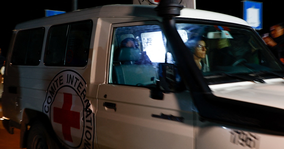 Un vehículo de la Cruz Roja llega a la frontera de Rafah, en medio de un acuerdo de canje de rehenes por prisioneros entre Hamás e Israel, en el sur de la Franja de Gaza, 29 de noviembre de 2023 (REUTERS/Ibraheem Abu Mustafa)