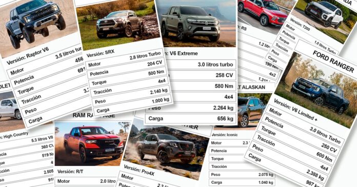 Entre 200 y 300 CV de potencia, hay tres pick-up medianas turbodiésel y una compacta naftera. Todas son 4×4