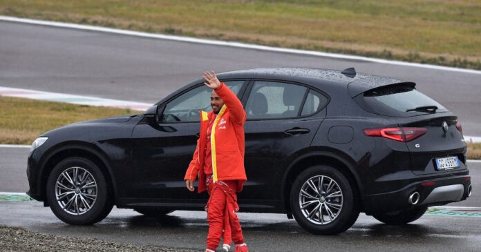 Hamilton, quien no conocía el circuito de Fiorano, salió del garaje a las 9:16 (hora local) y comenzó con un enfoque pausado y metódico. no solo por la ligera niebla, sino también para saludar a los fanáticos que asistieron al recinto para verlo por primera vez vestido de rojo.