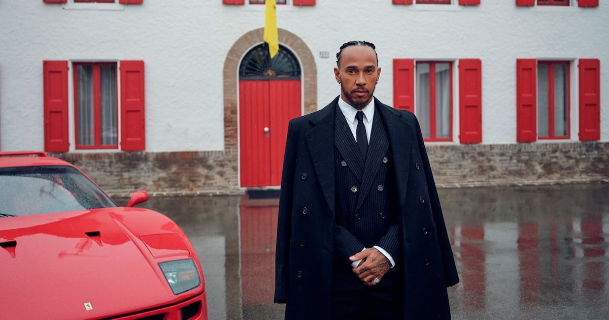 En una imagen que rápidamente se volvió icónica, Hamilton posó en la casa de campo de Enzo Ferrari en las instalaciones del equipo en Módena. El piloto británico, conocido tanto por su dominio en la pista como por su estilo, apareció en Instagram luciendo un sofisticado atuendo italiano: un abrigo cruzado de Ferragamo, un traje de raya diplomática vintage y una fina corbata negra, complementado con una camisa diseñada por Ferrari Style.