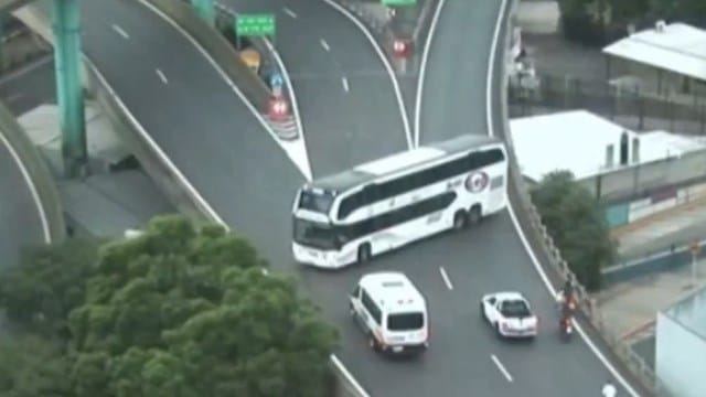 De acuerdo a las imágenes obtenidas por las cámaras de seguridad, el micro de larga distancia, que transportaba pasajeros, subió a la autopista en contramano, lo que provocó un operativo extraño por parte de los choferes.