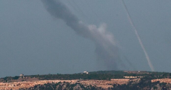 Una andanada de cohetes, disparados desde el sur del Líbano hacia Israel vuela, en medio de las hostilidades en curso entre Hezbolá e Israel (REUTERS/Gonzalo Fuentes)
