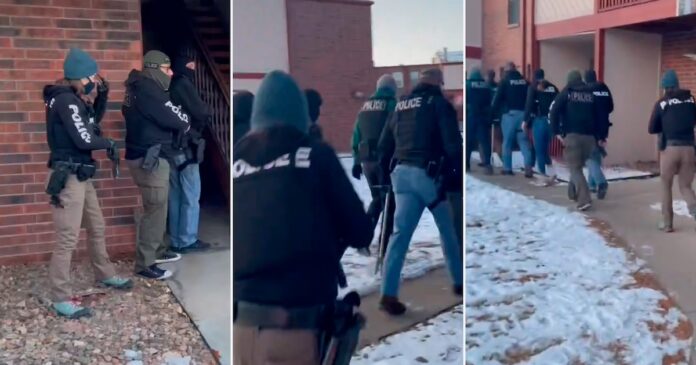 De acuerdo con la DEA, agentes federales y locales irrumpieron en un apartamento en el área metropolitana de Denver en la madrugada del lunes, ejecutando una orden de registro. Videos publicados por la Rocky Mountain Field Division (RMFD) muestran a los agentes acercándose a una vivienda en un complejo de apartamentos, derribando la puerta y entrando con armas en mano. Poco después, los oficiales detuvieron a dos hombres, quienes, según la DEA, se encontraban en el país de manera ilegal.