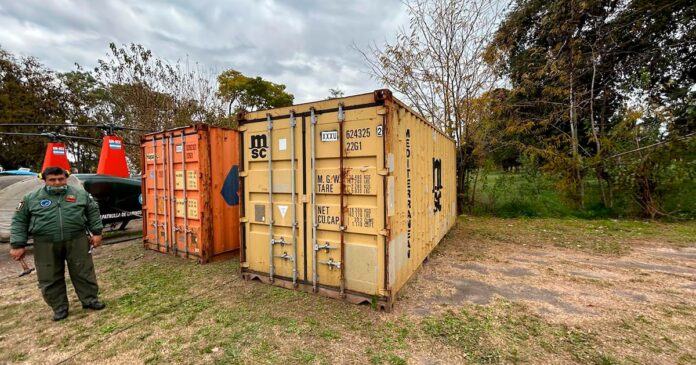 Los funcionarios del Ministerio de Seguridad, relata el acta, abrieron los contenedores: “En ambos se observa material que es descripto como: un lanzador o capatulpa, cuatro bidones para combustible y a su vez otro contenedor cerrado, el que contendría, en ambos casos, las aeronaves no tripuladas, más un ´pico media sombra´ y varias cajas cerradas sin individualizar. En ambos contenedores se observa condensación de agua por haber estado expuestos a humedad”.
