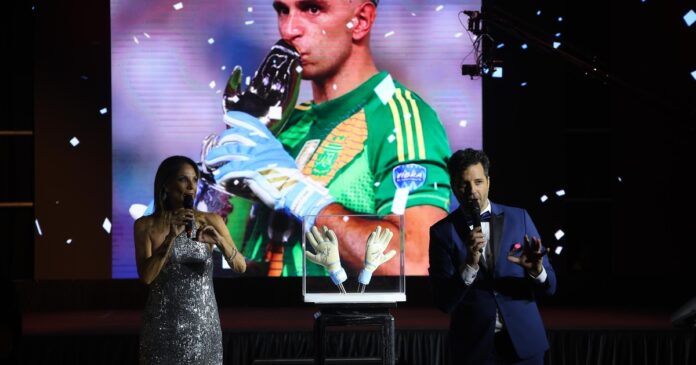 Los guantes del Dibu Martínez, oro puro: se subastaron por 100.000 dólares en la Gala de FUNDAMI