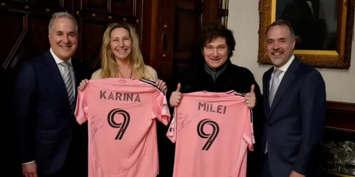 Jorge Mas Santos, principal accionista del club Inter de Miami, llegó a Argentina y se reunió con el presidente Javier Milei. Durante el encuentro, el empresario mostró una camiseta rosa del equipo y afirmó: “Esta es la primera camiseta, la rosa, en 2025” y Milei, al recibirla, expresó: “¡Y me la regalaron a mi! Tiene la firma del más grande de todos los tiempos, Lionel Messi”.