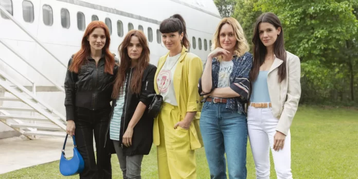 Pilar Gamboa, Violeta Urtizberea, Bárbara Lombardo y Marina Bellati con Griselda Siciliani en “Envidiosa”| Créditos fotos: Alina Schwarcz / Gentileza Netflix
