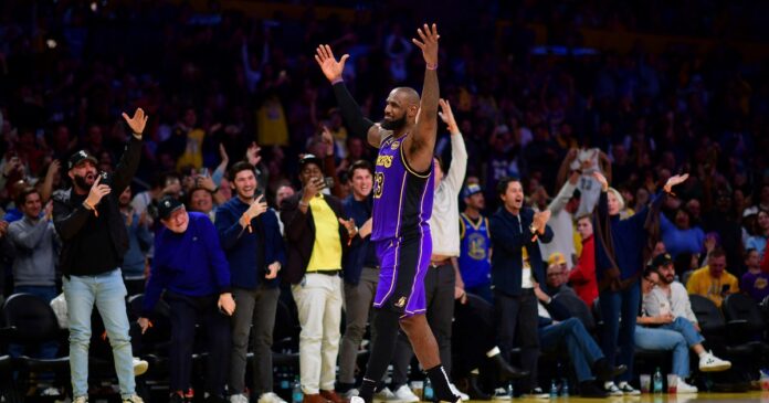 LeBron James – El triplazo de LeBron James desde mitad de cancha en una noche de récord para The King La estrella de Los Angeles Lakers no defraudó contra Golden State a la espera del debut de Luka Doncic.