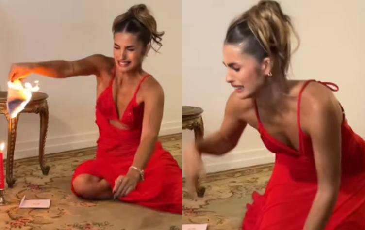 Alentada por la persona que estaba detrás de cámara a seguir sosteniendo el papel, Poggio soltó todo con un gesto de dolor cuando las llamas empezaron a llegar a su mano. Una imprudencia que no fue contemplada por quienes organizaron la producción que generó repudio en redes.